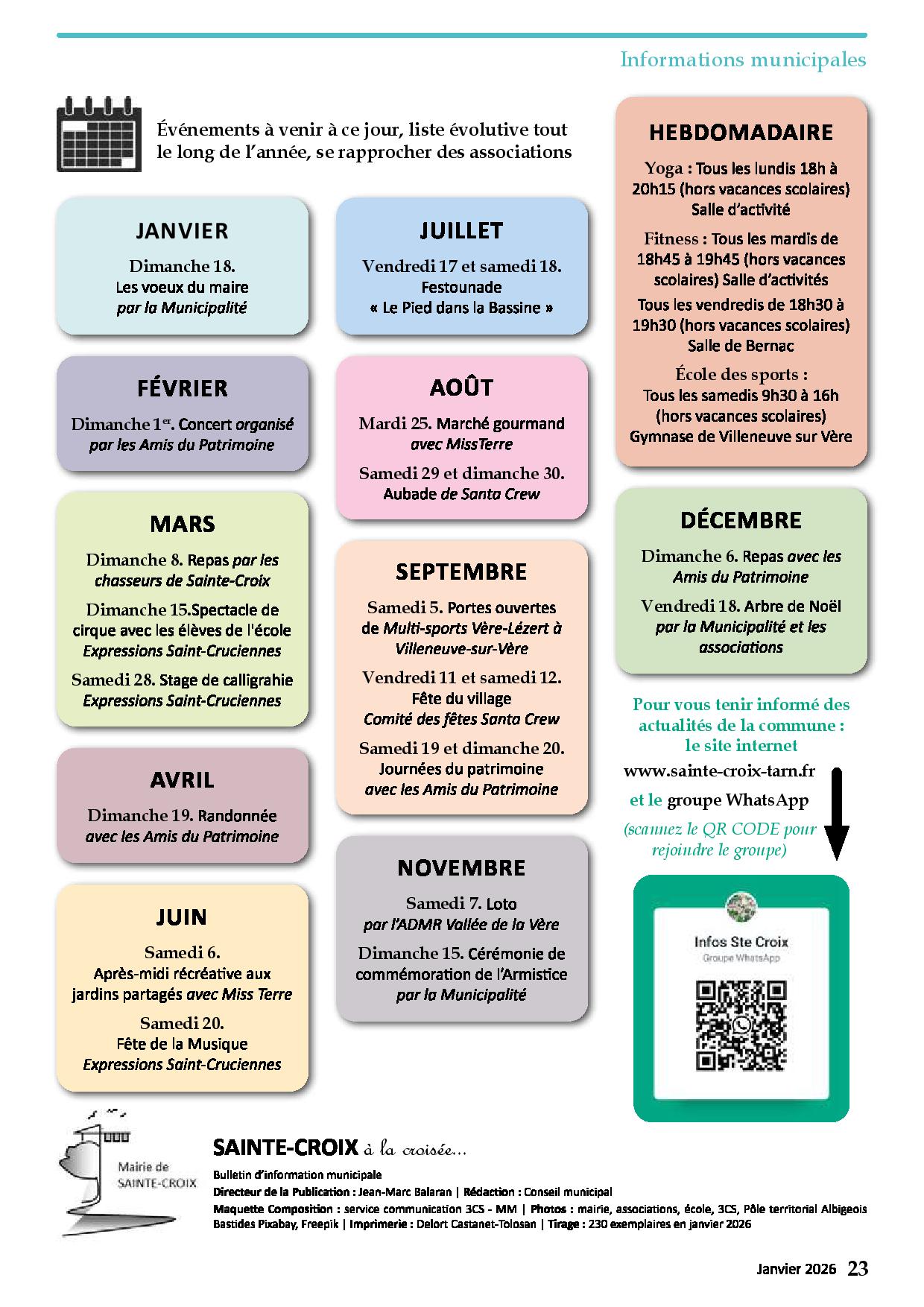 Les différentes manisfestations de la commune tout le long de l'année 2026.